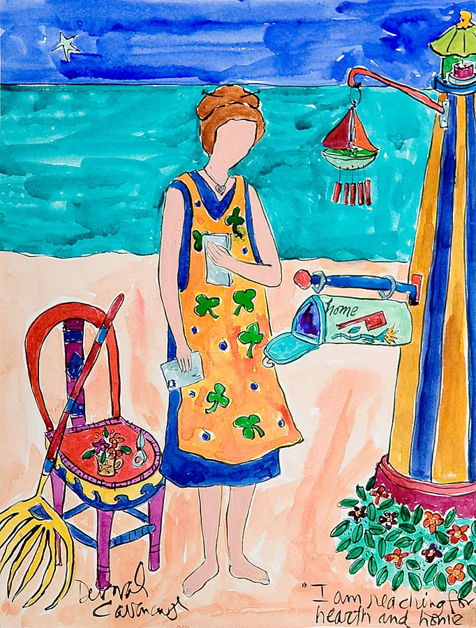 The woman in my paintings is never unhappy or bored or sad. She loves the life she lives. And, why not? It is, after all, her own dream. Yet, she always knows there is more to the world than just her own island. And yes, she sometimes does have a longing for something that she isn't even sure what to call. But that’s ok.  The longing is the fodder of new dreams….