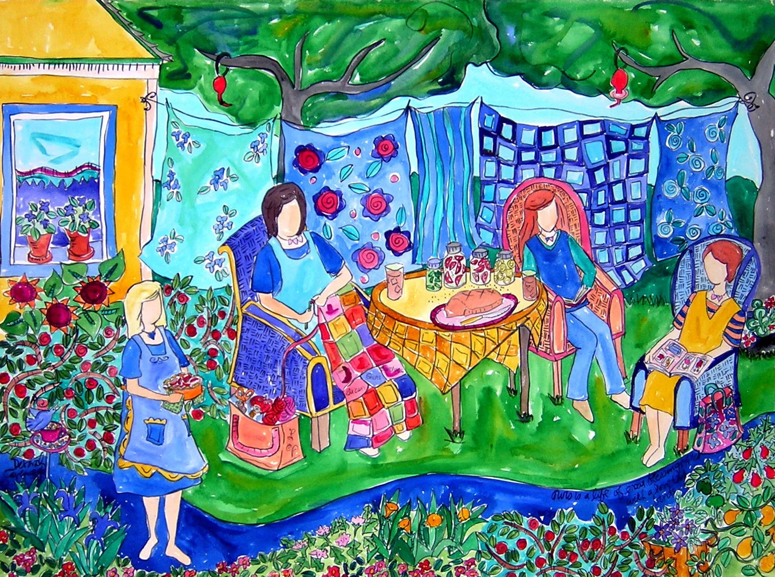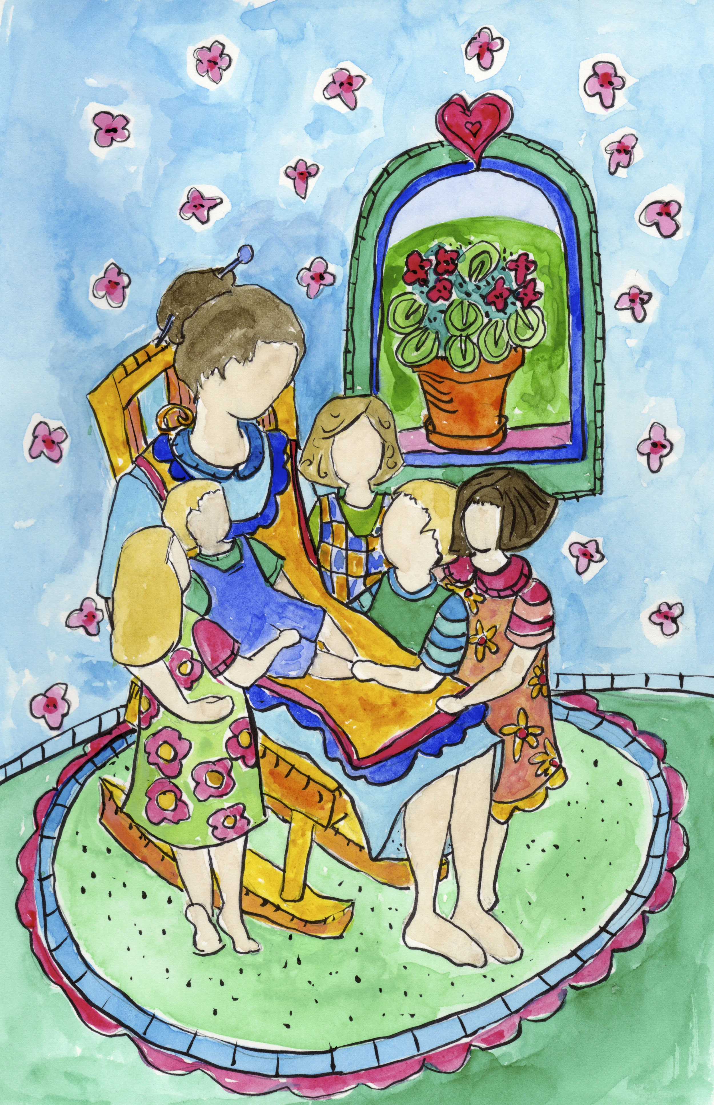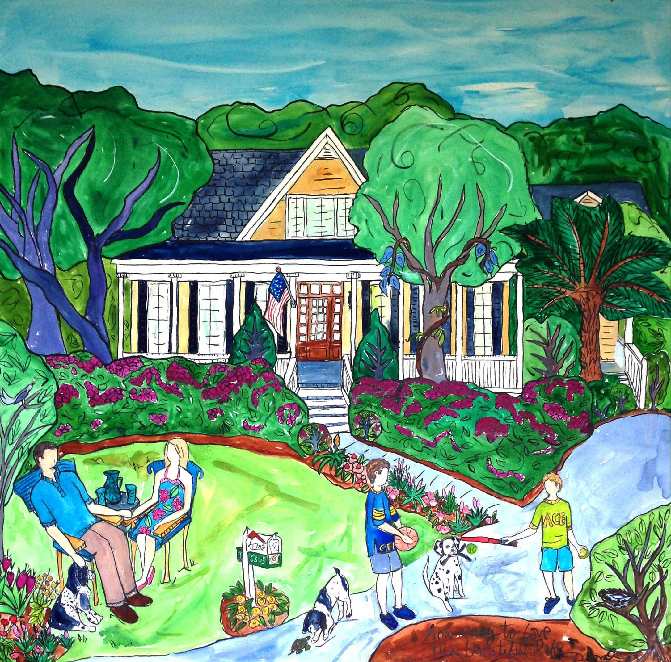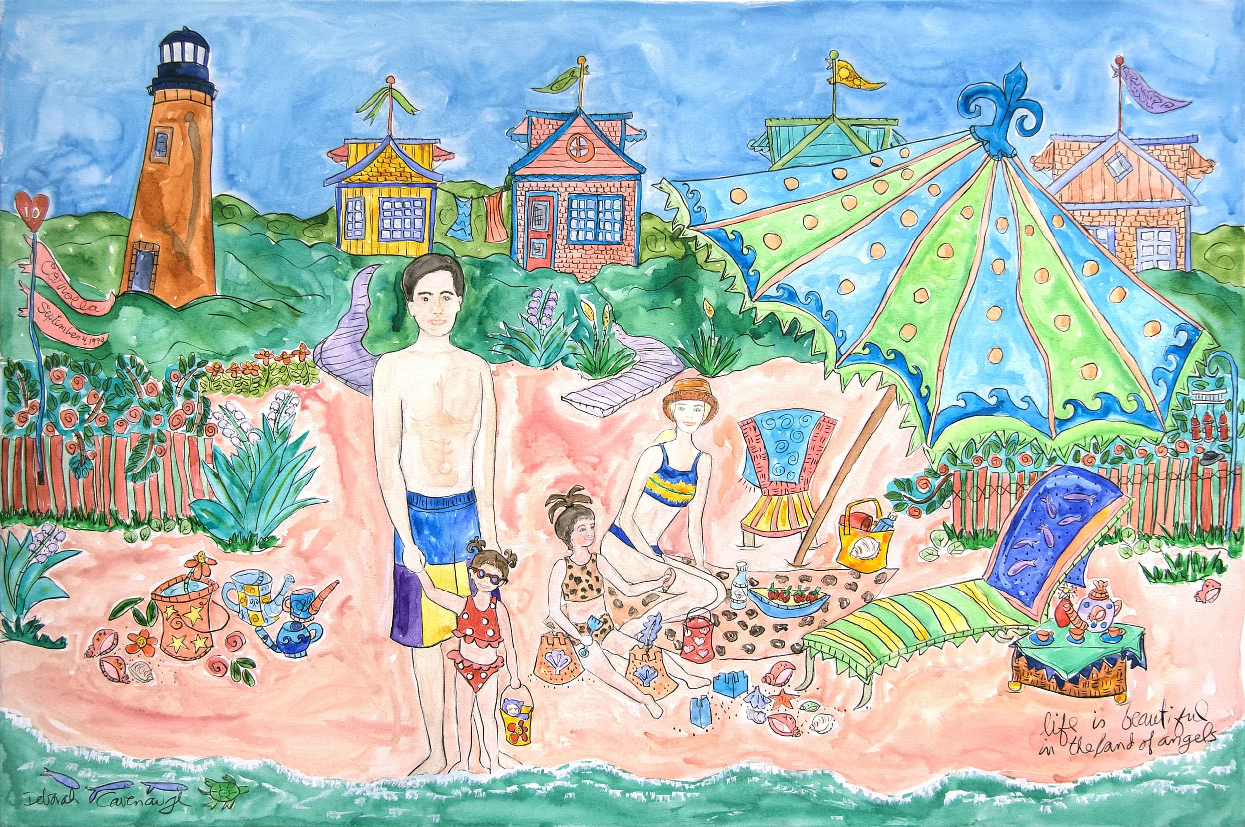 Every family has that special place where they gather or share best times and memories. It could be a place you gather now or one that lives in your memories. In my family portraits, I endeavor to create a moment in time that will forever be a blessing. If I do my job well, when you look at the painting in the future, your thoughts will be of the love you share. The settings for the family portraits have been wide - kitchens to living rooms, beach to park, Paris to Disney World. Wherever that special memory lives in the heart of your family, I am happy to paint it for you. The price of Family Commissions depends on size, number of folks and difficulty. Most of these have no facial features, but that is because I am well known for that style. If you want a more intimate portrait, please make sure to check out the Individual Portrait pages to see some faces.