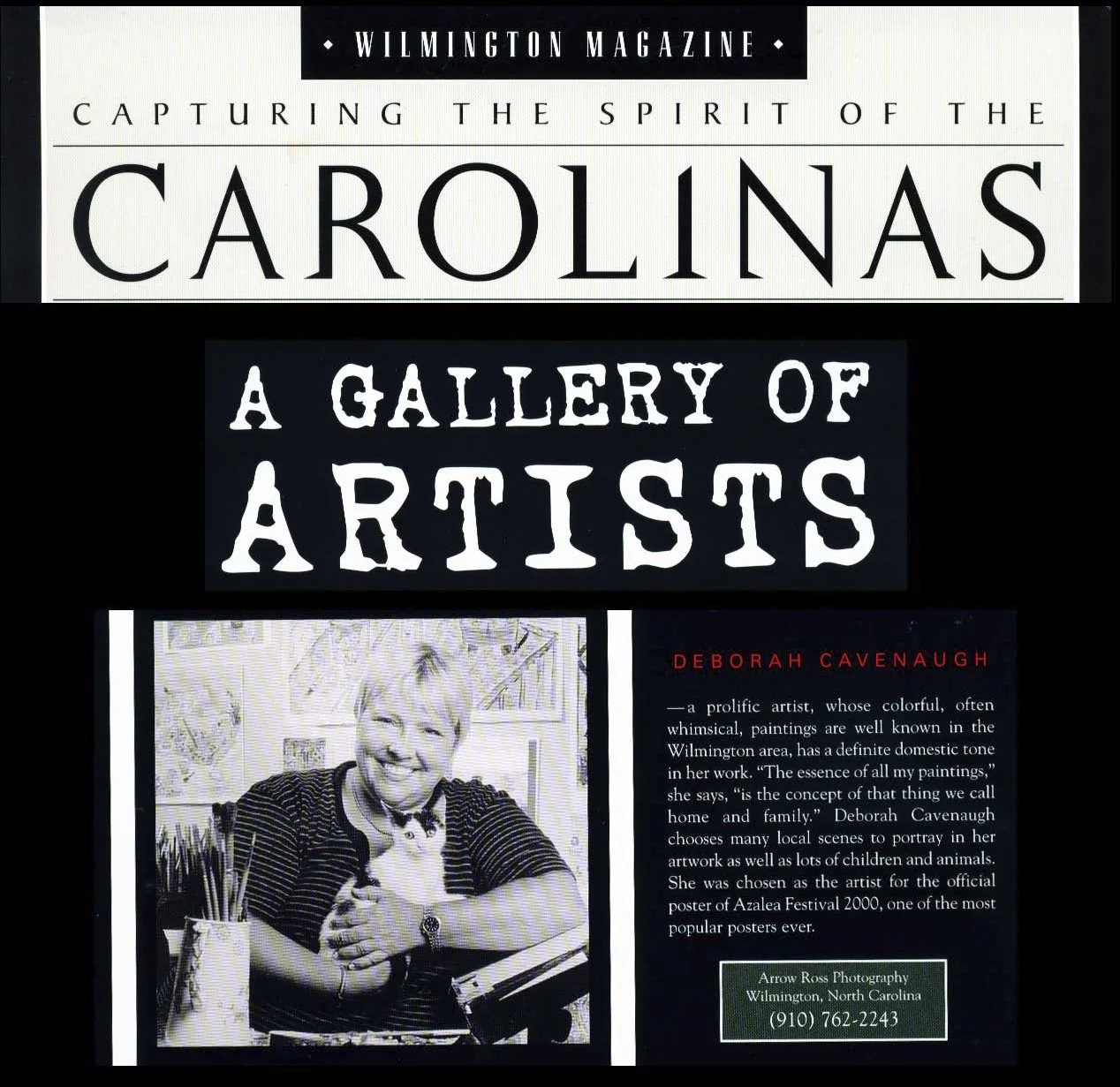 Deborah was chosen as the official Artist of the 2000 Azalea Festival, the largest festival in southeastern US.  The art appeared on posters, merchandise, and the Azalea Festival Magazine, pictured here. The merchandise featuring Deborah's work was the the best selling in the history of the Azalea Festival at the time.